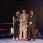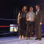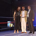 Ο κ. Μιχάλης Ζαμπίδης, έχοντας καλέσει τον βραβευόμενο ασφαλιστικό σύμβουλο, κ. Κωνσταντίνο Παύλου, στο ρινγκ και χρησιμοποιώντας ως όπλο τη γραβάτα του, προσομοίωσε τον αγώνα που καθημερινά δίνουν όλοι οι συνεργάτες ενάντια στην κρίση και απέδειξε ότι όποιος συντονίζεται «αδιαμαρτύρητα και καταδικασμένα» στον στόχο του θα τα καταφέρει αναμφίβολα.
